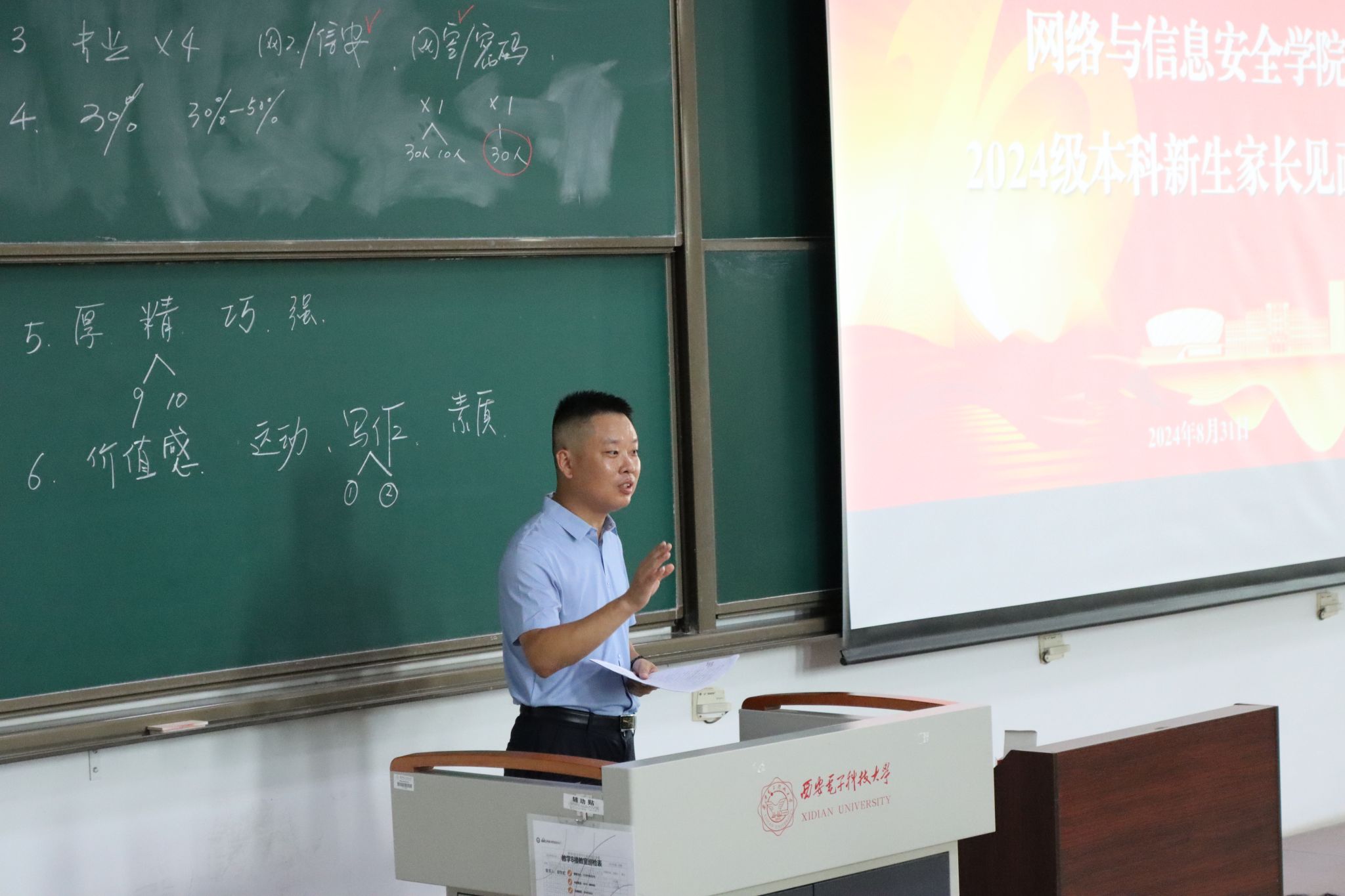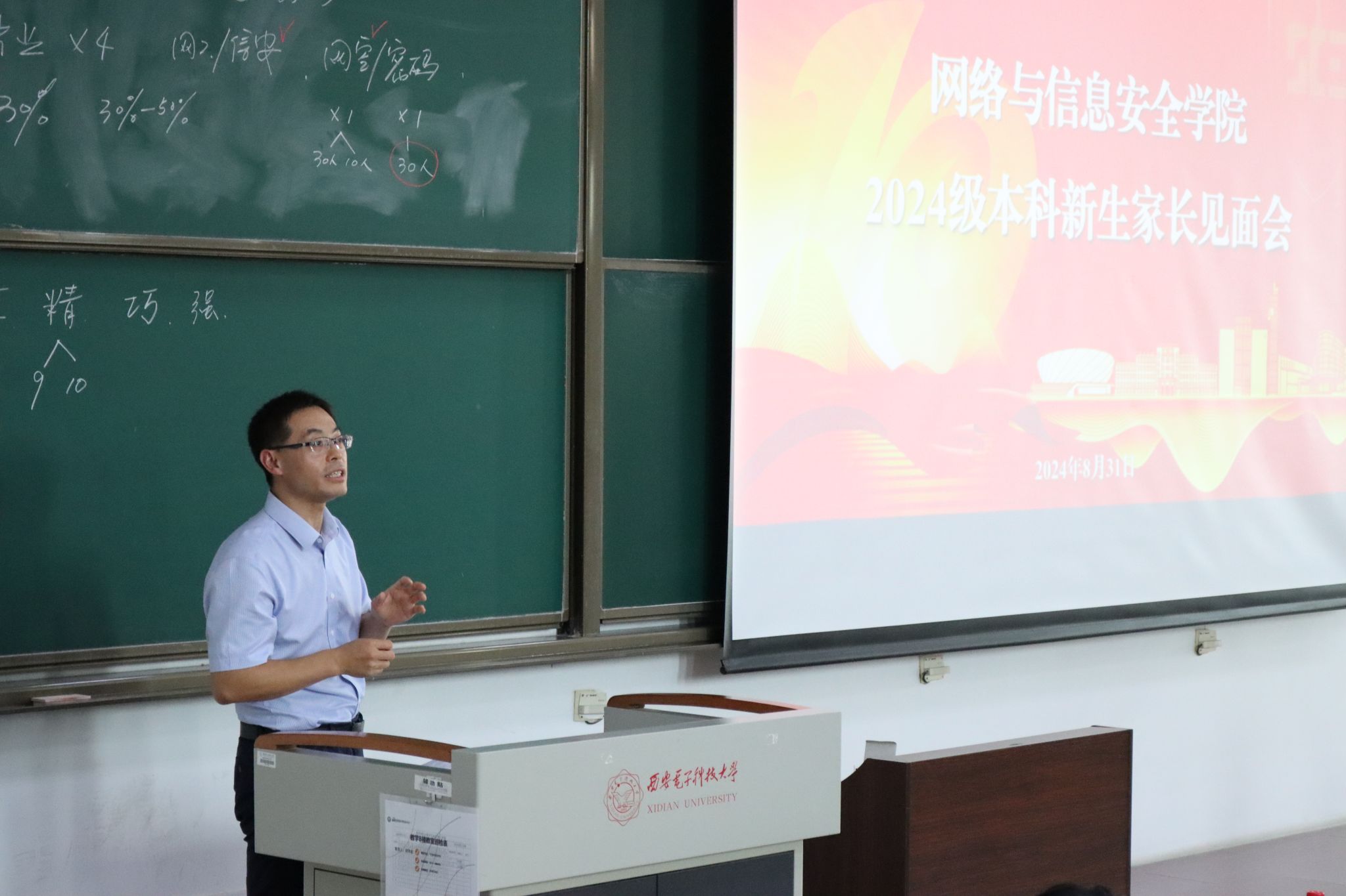李晖就学校和学院发展历程、师资队伍、教学科研、资源保障、国际合作等方面对学院情况做了详细介绍。他谈到,西电作为密码学和信息安全领域的“黄埔军校”,深耕网络安全领域,网络空间安全学科在第五轮学科评估中也取得了优异的成绩。今年也是学院成立十周年,学院将在新时代新征程上继续在网络安全领域取得新的成就。杨超用几组数据和关键词阐述了学院专业设置、教育教学、学科竞赛和本科生实习实践等情况,生动风趣的语言引得现场家长阵阵掌声。张国良介绍了学生日常教育管理,他希望家长与学校同向同行,家校共育,把孩子培养成对国家、对社会有用的人才。会后家长们也积极提问交流,通过各位领导老师的介绍,家长表示对孩子们加入网信院充满信心,对孩子未来接受的教育充满期待。