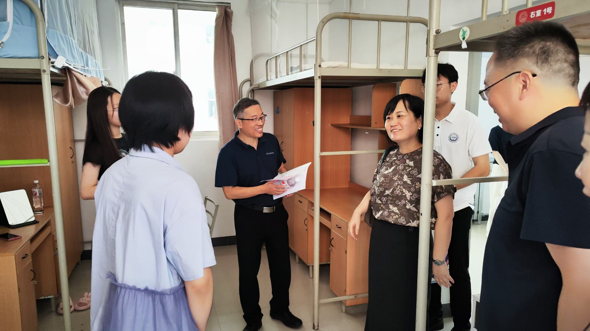 8月31日上午,学院党委书记张美茹、执行院长李晖,走进竹园1号楼和竹园3号楼,深入学生宿舍看望2024级新生,并与学生和家长亲切交流。学院领导主动关心并了解学生报到情况,询问在新环境生活学习是否存在困难,并为新生们送上定制文化衫、学院宣传折页、钥匙扣和专属帆布袋等学院新生大礼包。学生和家长们纷纷对学校和学院周到细致的服务和暖心的关怀表示感谢!同学们表示将在良好的环境中志存高远、脚踏实地、努力拼搏,为网络强国做出西电贡献。