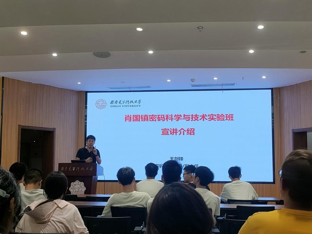 (通讯员:郑祎翾 杜小刚)2024年9月4日上午,银河6163官方网站拔尖试点班负责人付玉龙副教授和王剑锋教授在西电南校区分别进行“网络空间安全”实验班和“肖国镇密码科学与技术”实验班的宣讲活动,宣讲会在网安大楼101会议室举行。此次宣讲会不仅对本院的“网络空间安全”实验班和“肖国镇密码科学与技术”实验班的学习课程、发展规划等基本概况进行介绍,而且吸引了众多2024级学生深入了解“网络空间安全”实验班和“肖国镇密码科学与技术”实验班的优势和未来升学就业发展等。