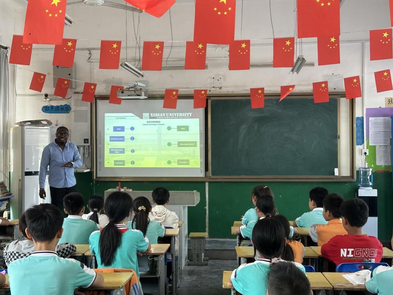 27日上午,秋高气爽,丹桂飘香,网信院师生带着深切关怀与温暖,来到蒲城县孝通小学,向学校捐赠校园文化建设专项资金。在座谈会上,孝通小学韩建卫校长介绍了近年来学校的发展情况,并向学院一直以来的关心和支持表示感谢。学院向孝通小学捐赠了校园文化建设专项资金,用于加强学校的校园文化建设,培养具有家国情怀、创新精神和实践能力的学生。随后,学院外籍教师——来自喀麦隆的夏天老师,为孝通小学的学生带来了英语语法课。夏天老师的英语课生动有趣,深受孩子们的喜欢。