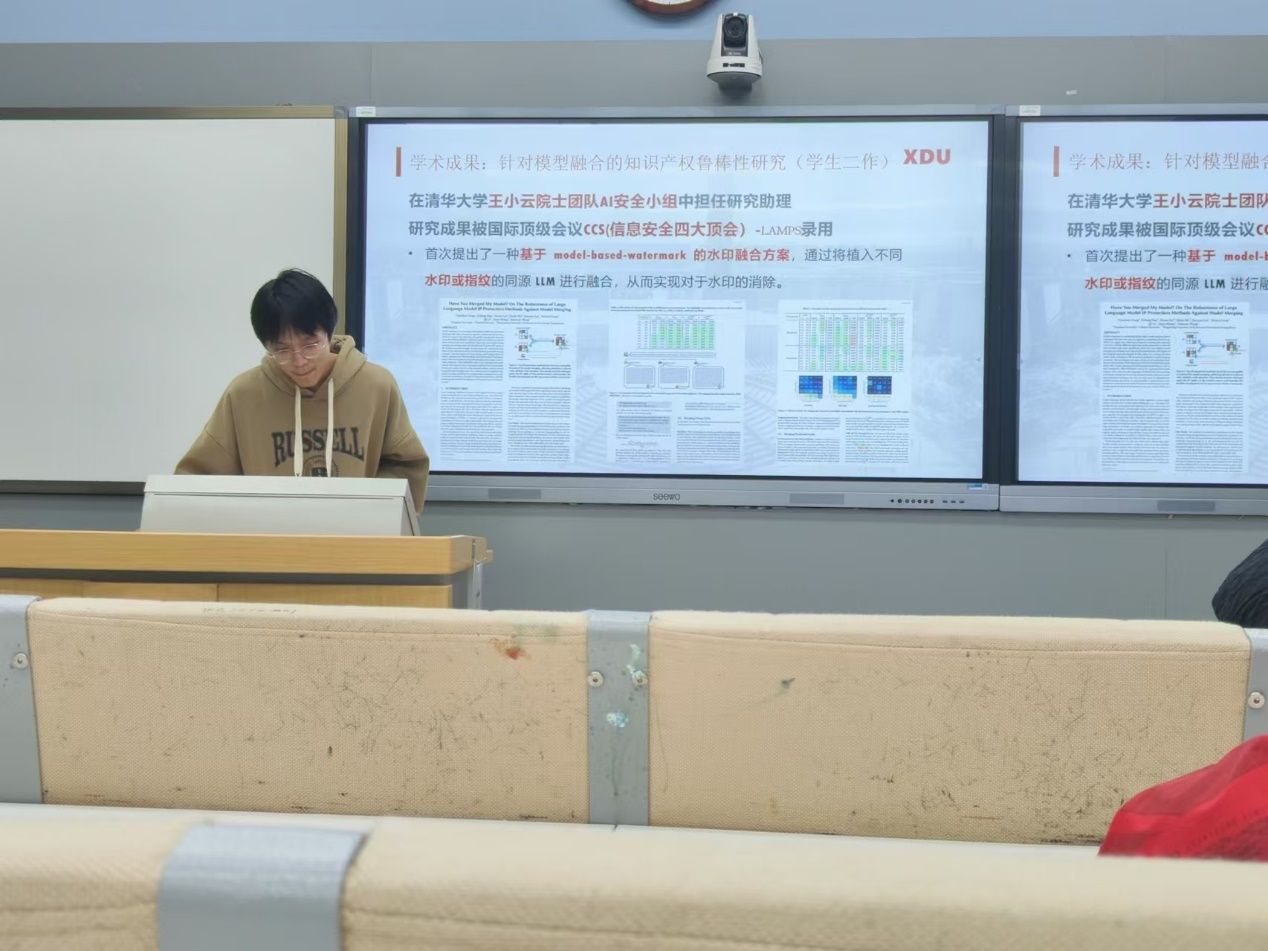 随后,刘泽森向大家介绍了从选题到研究,再到成果总结的全过程,并介绍了参与科研的途径,鼓励大家积极投身科研活动,为提升自身能力、推动科学进步贡献力量。在介绍如何寻找合适的科研方向时,刘学长特别提到,不要局限于本校的导师和资源,要学会“跳出思维圈”,向其他学校的教授和学术资源寻求帮助。他分享了自己通过跨校合作、参加学术交流活动所获得的宝贵经验,并鼓励同学们勇敢拓宽自己的学术视野。