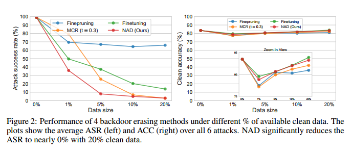 本文提出的基于神经元注意力蒸馏的后门净化方法是目前业界最简单有效的方法,能够抵御目前已知的所有后门攻击,理论分析表明该方法具有对后门攻击的普适性防御能力。论文代码已经开源:https://github.com/bboylyg/NAD。