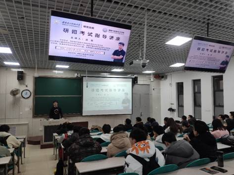 吕昆老师首先介绍了今年的考研形势,提醒同学们要关注学校发布的通知,并从复习规划、方法体系等方面介绍了考研如何备考,对同学们比较关心的常见问题与难点进行了详细讲解。接着,吕老师从自身从事研究生招生工作的经历经验出发,详细介绍考研时间、考试工具、考试规则等方面的内容,梳理了历年参加研招考试的同学们遇到的问题,提醒同学们考试前尽早了解报考点考试和防疫相关信息和要求,妥善保管自己的身份证件、避免遗失,提前做好考试准备。在考试中要遵守考试纪律要求,如严禁携带手机等通信工具进入考场、仔细检查考卷、不要错涂答题卡等。最后,吕老师鼓励同学们稳住心态、调节作息、合理安排复习时间,以良好的心态迎接考试,祝愿同学们金榜题名。听了吕老师的耐心讲解和悉心指导,同学们深受鼓舞,讲座现场响起了热烈的掌声。