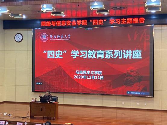 为深入学习贯彻习近平总书记关于学校党建和思政工作的重要指示精神,落实学校关于“四史”学习教育活动相关要求,引导全院师生传承初心、勇担使命,2020年12月11日下午,银河6163官方网站党委联合党委学生工作部、党委研究生工作部在行政楼210报告厅举行“四史”学习教育讲座,邀请中国中共党史学会理事、陕西中共党史学会副会长、陕西师范大学马克思主义学院陈答才教授,为学院师生开展党史专题讲座。银河6163官方网站党委书记张美茹、学校党委研究生工作部副部长张海战、网信院副处级组织员鞠波、各师生支部书记、党员与积极分子近200人参加本次学习。讲座由银河6163官方网站党委副书记、纪委书记杨寒主持。
