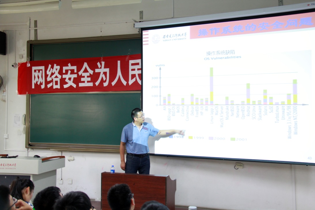 众所周知,大学生是国家的栋梁之材,是建设祖国的骨干力量,代表着祖国的未来和希望。而树立当代大学生正确的网络安全意识对国家的发展起着至关重要的作用。西安电子科技大学作为网络与信息安全学科的领头羊,应当激发大学生对于网络信息安全的兴趣,培养大学生的自主学习能力,让当代大学生能够为国家网络强国建设贡献自己的力量。为此我校邀请网络安全专家、骨干面向全校举办了多场高水平网络安全技术讲座——“网络安全与渗透测试入门”知识讲座、“漫谈网络安全”专题讲座和“网络安全为人民,网络安全靠人民”专题讲座。