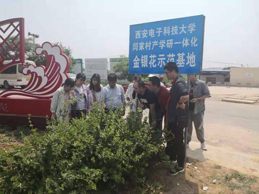 网信院一行在尧山镇闫家村党支部书记王春颜的陪同下参观了西安电子科技大学闫家村产学研一体化金银花示范基地以及当地的研发交易大楼,调研了金银花的产业发展情况,教师代表和学生代表实地考察了金银花的生长环境。王春颜书记和王敬涛驻村书记详细介绍了闫家村金银花产业的发展现状以及金银花不同生长状态的价值和功效和目前金银花产业下一步发展需要解决的问题。