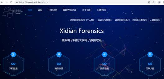 此外,网络安全竞赛基地电子数据取证工作室维护更新我校电子数据取证综合网站,收集了包括基础知识wiki,训练靶场,历届赛题解析等学习资源,编写了体系完善的电子数据取证入门路线,与众多高校共享,以共同交流进步。