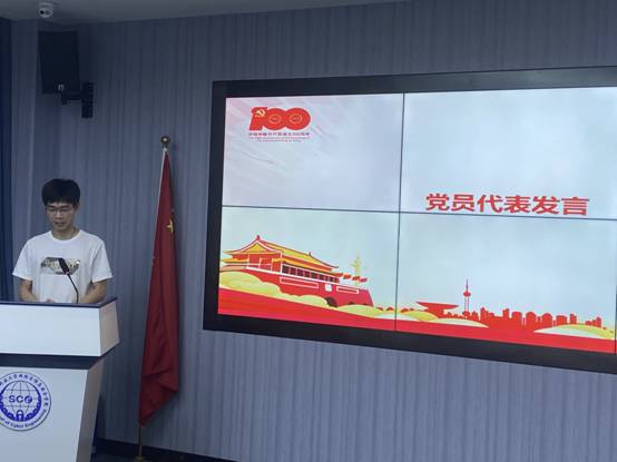 建党100周年庆祝大会结束后,党员代表进行发言,教师党员代表曹雪菲、学生党员代表王枫为分别就中国共产党建党百年和入党初心谈了自己的感想,并为党送上祝福。