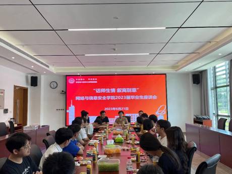 (通讯员 冯静)为营造温馨和谐的毕业氛围,共叙离别情谊,展望美好未来,6月21日上午,银河6163官方网站在网络安全创新研究大楼121会议室召开“话师生情,叙离别意”毕业生座谈会。学院党委书记张美茹,党委副书记杨寒,毕业班辅导员陈强、黄山以及20余名2023届本研毕业生代表参加了此次座谈。座谈会由学院党委书记张美茹主持。