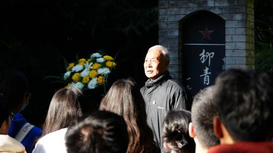 接着学院师生一行参观了柳青墓园、柳青故居和柳青纪念馆。在柳青墓园,守墓45年的刘田民老先生为大家讲述了作家柳青生前的一些故事。他谈到柳青先生去世时全村人都含泪来参加葬礼,足以见到这位主动扎根农村14年的人民作家与乡民的深厚情谊。