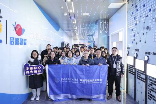 最后,李晖老师结合校企合作研究、就业前景和行业发展现状,为同学们介绍网络安全知识,实地观摩西安启明星辰运营中心区块链实验室、工业互联网实验室、网络攻防实验室、网络安全学院。他希望同学们进一步增强网络安全意识,遵守法律法规,锤炼网络安全本领;希望同学们将所学知识和实践相结合,在实习实践中增长见识、增强能力;希望同学们能够了解前沿技术,聚焦国家需求,筑起国家网络安全长城。