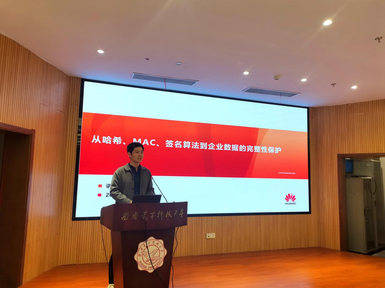 本次活动还邀请到了我院优秀毕业生、华为公司网络安全专家袁浩然博士返校开展讲座,以《数据安全——从哈希、MAC、签名算法到企业数据的完整性保护》为主题,从密码学算法出发,介绍如何使用密码学技术进行数据完整性保护。针对不同数据类型、不同数据大小、不同使用频次的数据介绍不同的数据完整性保护方法,解决企业中数据完整性保护的问题。为在校的学弟学妹们提供了一堂生动的技术知识盛宴。在互动环节,同学们积极发言、提问交流,会场气氛逐渐高涨。