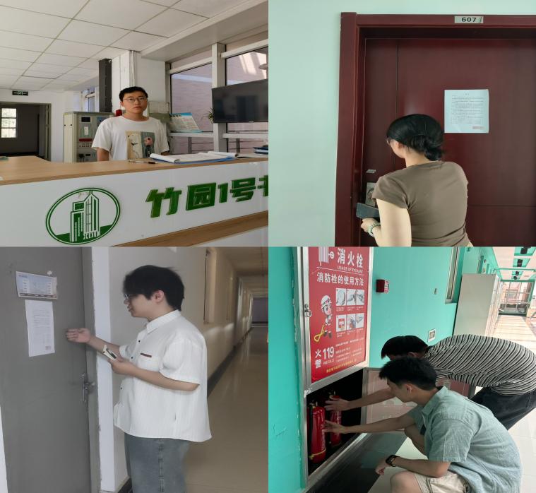 转至宿舍楼,研究生同学们化身宿舍楼管理员、消防安全检察员、房源信息核查员,进行宿舍楼来访登记、消防设备检查以及宿舍巡查等工作,确保同学们宿舍的安全,营造了良好的生活环境。李智灵同学谈到:“在此次的劳动教育中,我报名了宿舍楼管的体验岗,宿舍楼管的工作关系着每一位学生的日常生活:每天的清洁、维护和安全检查,虽是重复的劳动,但每一份付出都换来了宿舍的整洁与安宁。经过这次体验,我深感这个岗位的责任重大,也体会到了服务他人带来的快乐和满足感。”