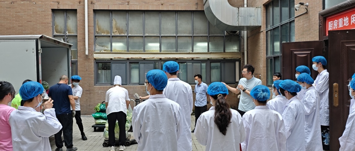 早上7:30,同学们前往中心厨房,中心厨房是学校于2015年建立的为南北校区供应米饭、馒头、面条等各类食物原料的地方,在这里,同学们看到了馒头的制作过程,大米的挑选、清洗、加工到煮熟的过程,对保温箱进行清洗的过程,感受到流水线作业,自动化技术为学校餐厅食品加工带来的便利。工作人员表示:所有的工作人员每天早晨四点多就要开始工作,直到晚上。一位同学在参观后表示:“通过亲自参与食材检验,我更加了解了食品安全的重要性,也增强了自己的食品安全意识。”
