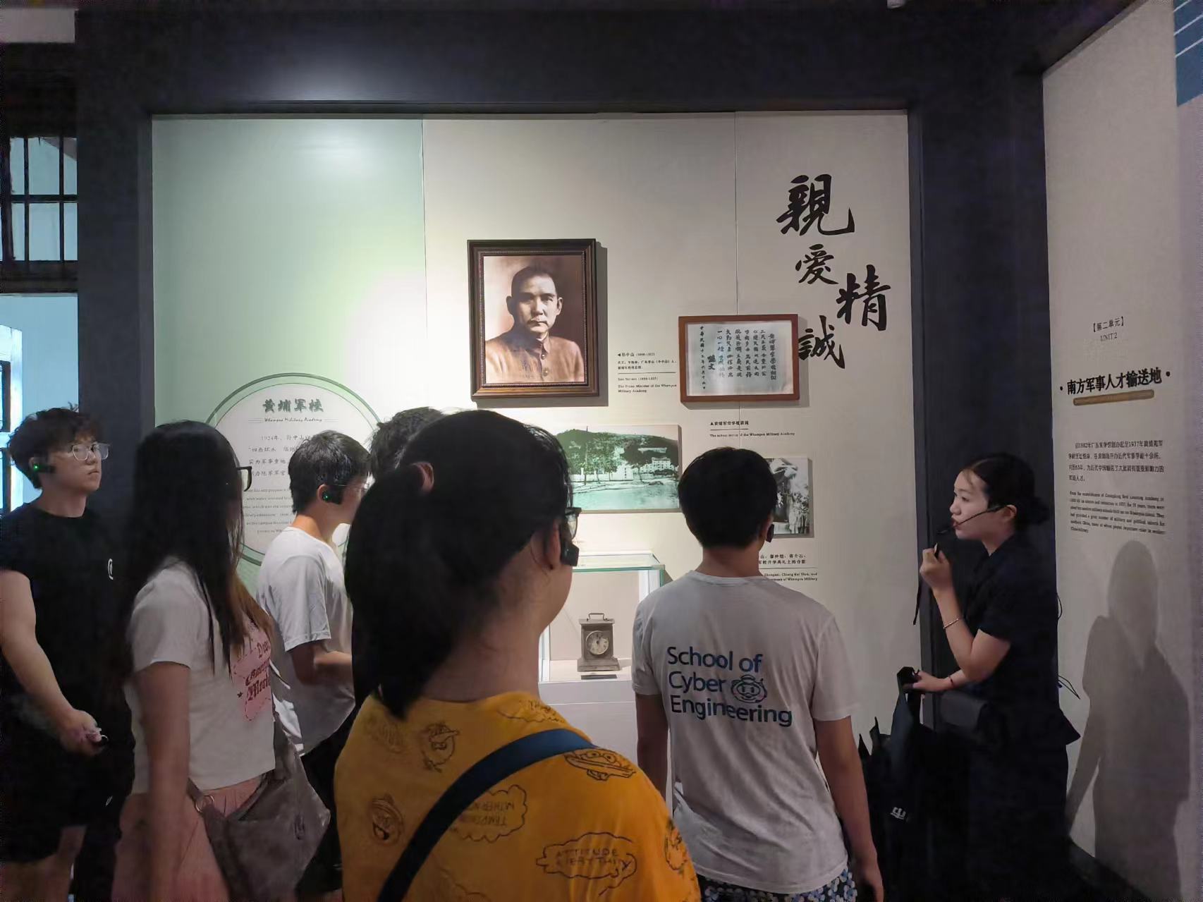 7月13日,实践队员们在辅导员谢雨航的带领下,走入黄埔军校旧址纪念馆。在这里,学院师生们深入了解了孙中山先生曾经的办公生活和革命思想的重要传承地点。特别是走马楼,作为军校重要的教学和行政建筑,见证了无数革命志士的成长与奋斗历程。一幕幕峥嵘岁月,让同学们深有感触。