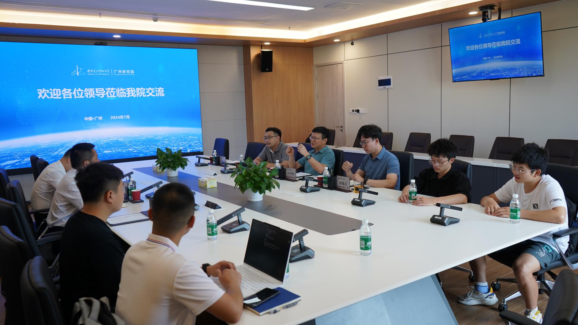 7月14日,实践队员们来到西安电子科技大学广州研究院,参观了广研院的食堂、教室和宿舍,广研院舒适的设施、宏伟的外观给大家留下了深刻的印象。在交流座谈会上,广州研究院党委书记兼行政负责人刘丰雷详细介绍了广研院的基本情况与发展政策,着重阐述了其区位优势、住宿条件和课程项目等优质资源。张国良书记表示,要充分利用广研院现有的优势资源。双方随后就如何抓住行业发展机遇,为师生提供更多发展和合作机会进行了深入探讨。