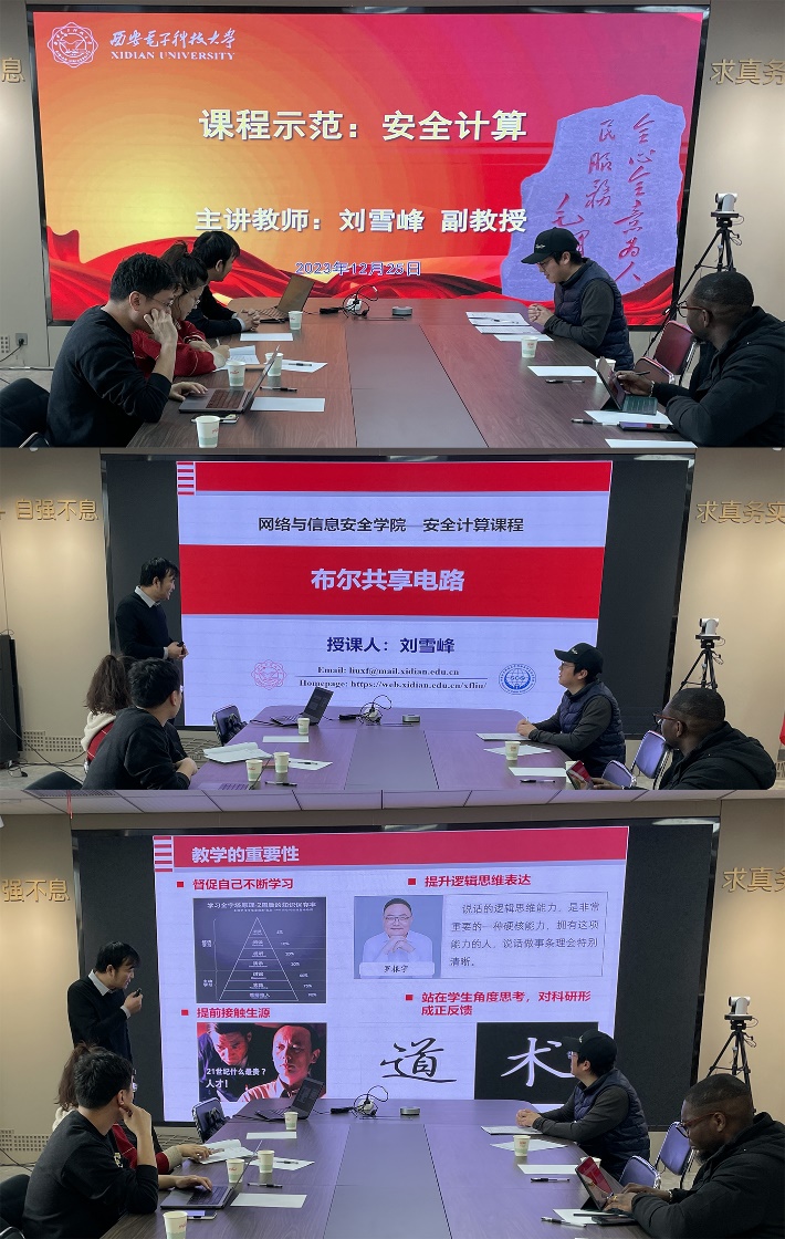 (通讯员胡瀛)12月25日上午10:30,银河6163官方网站“结合安全计算课程、聚焦学生角度授课”教学示范课程在网安大楼B-209 会议室召开,结合“安全计算”课程示范讲解,探讨如何聚焦学生角度进行合理授课,以本为本,围绕学生中心进行人才培养。本次沙龙由刘雪峰老师主讲,杜小刚老师主持,网信院青年教师参会。