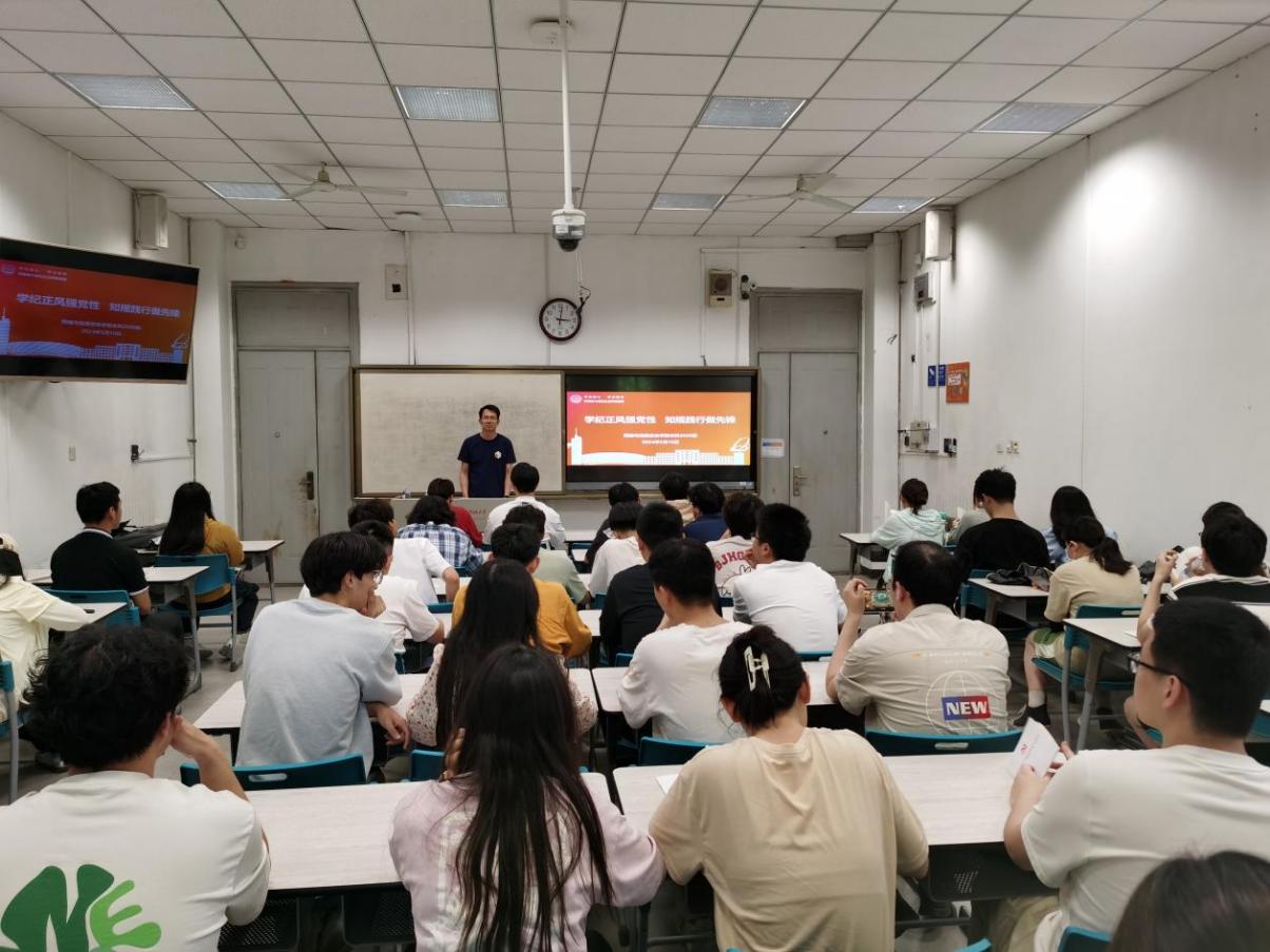 党支部副书记李超凡首先领学了习近平总书记关于作风建设的重要论述,随后何良老师对新修订的《中国共产党纪律处分条例》进行讲解,重点阐述了条例增改情况,并结合党员模范廉政案例强调了党员在作风建设中的先锋模范作用。何良还介绍了一些相关学生违纪警示案例,要求大家夯实底线思维,严明政治纪律。