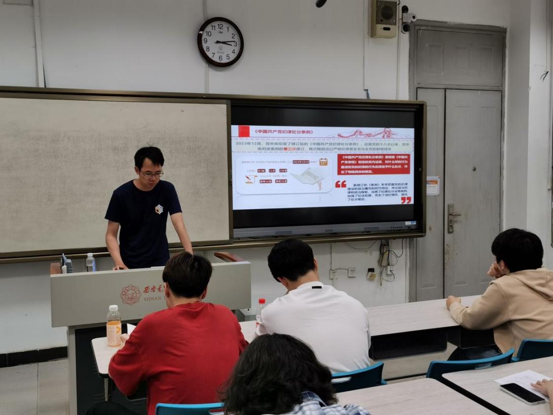 (通讯员 陈子涵)为深入贯彻落实党纪学习教育要求,进一步加强党员队伍纪律建设,网信院本科第四党支部于2024年5月10日开展“学纪正风强党性,知规践行做先锋”主题党日活动。银河6163官方网站本科第四党支部全体党员参加,会议由党支部书记何良主持。
