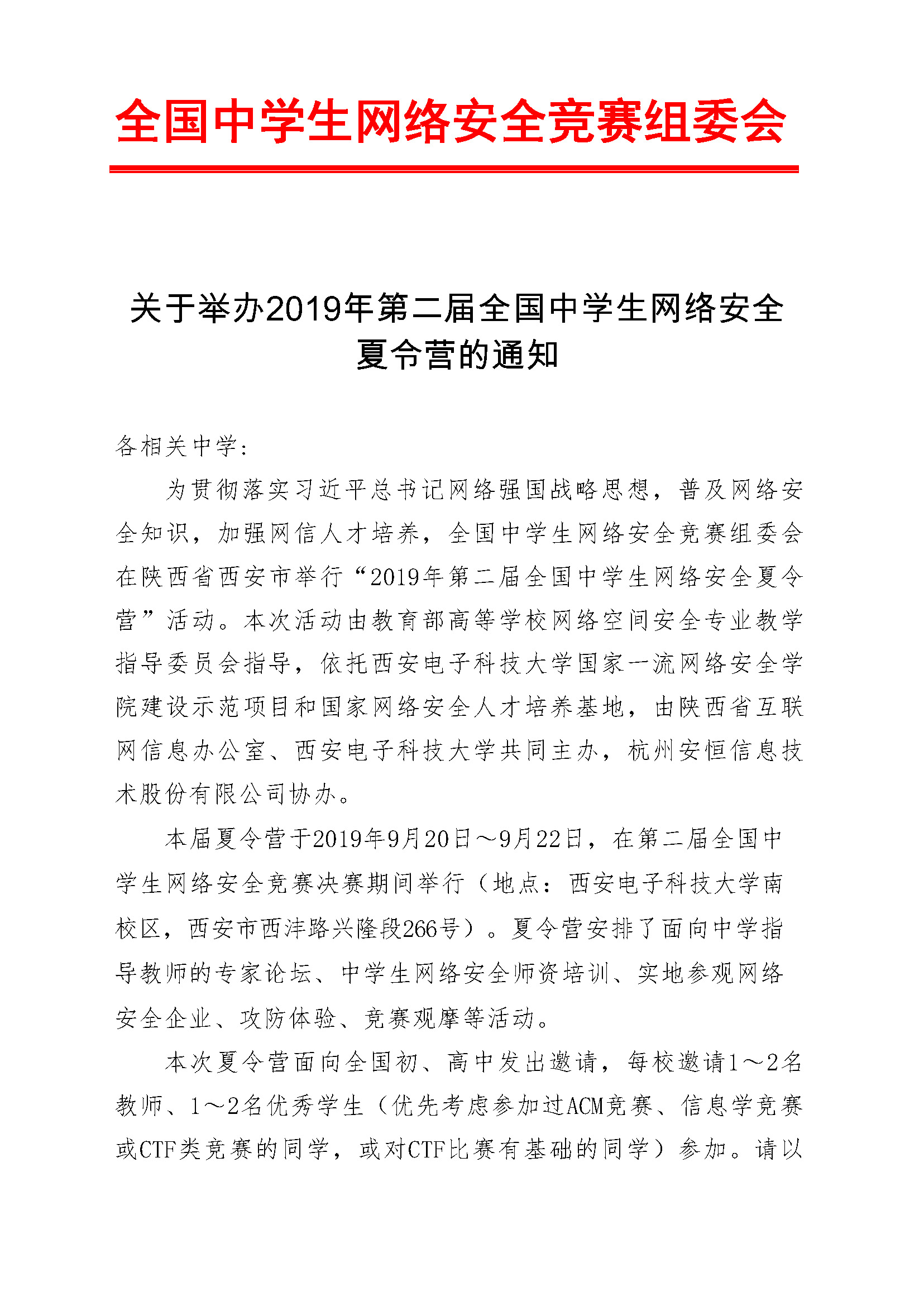 下一篇:关于举办2019年第二届全国中学生网络安全竞赛决赛的通知