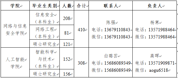 1.信息发布:两学院通过官方线上平台(微信公众号:“西电网信院”、“西电人工智能学院”、“AI在西电”),向全体毕业生推送参加单位的企业信息与招聘要求。