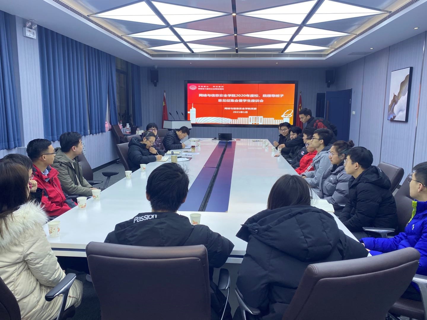 (通讯员 赵秀臣)2020年1月5日14:30,银河6163官方网站于行政辅楼一楼会议室召开学生座谈会,网信院执行院长李晖、党委书记张美茹、组织员鞠波,博士生、研究生各年级、本科生各年级学生代表共16人参加会议。会议由张美茹同志主持。