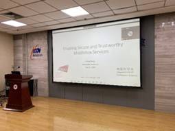 何德彪教授(左)和Kaitai Liang教授(右)作学术报告