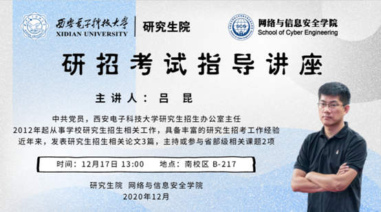 网信院联合研究生院举办研招考试指导讲座通讯员(成诺 金国澳)2021年全国硕士研究生招生考试在即,为助力考研学生科学备考,了解备考内容,明确备考方向,提高备考效率,12月17日...